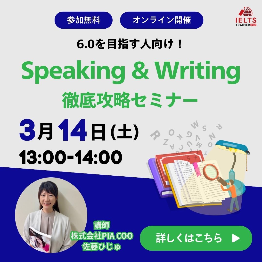 3月はIELTS SpeakingとWritingにフォーカスしたセミナーを2回実施いたします!