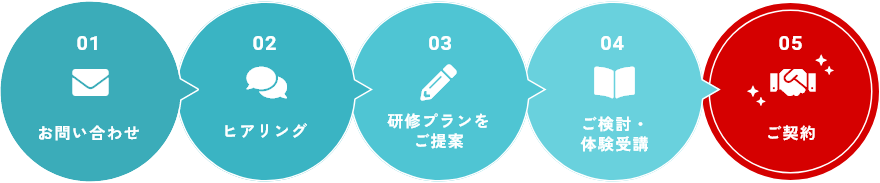 PIAの法人様向けコースは、お客さまのニーズに合わせてカスタマイズが可能です。ヒアリングの際には、担当の者より導入目的、目標、期間など詳細を伺った上で、カスタマイズした研修プランをご提案いたします。